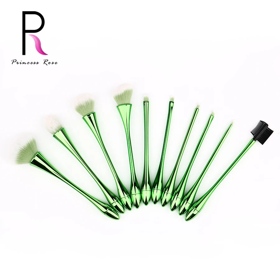 Fashion Princess Rose 10pcs Pop Gradient Green Colorful High Quality Beauty Makeup Brush Set Pędzel