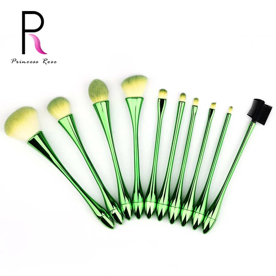 TOP Fashion Princess Rose 10pcs Pop Gradient Green Colorful High Quality Beauty Makeup Brush Set Pędzel